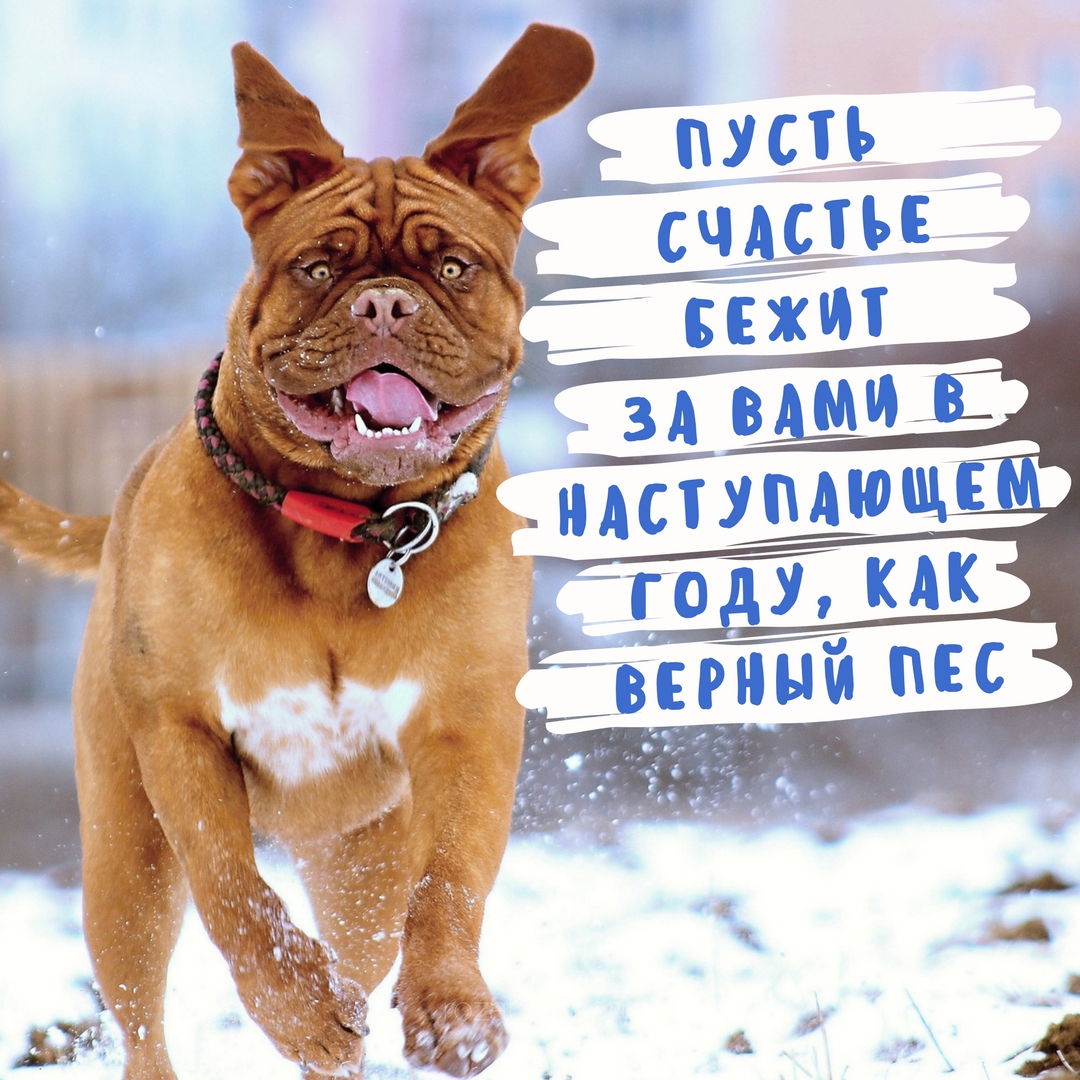 Приближается 2018 год! Открытки и картинки с пожеланиями будут приятным дополнением к новогодним торжествам. Пусть счастье бежит за вами в наступающем году, как верный пес!